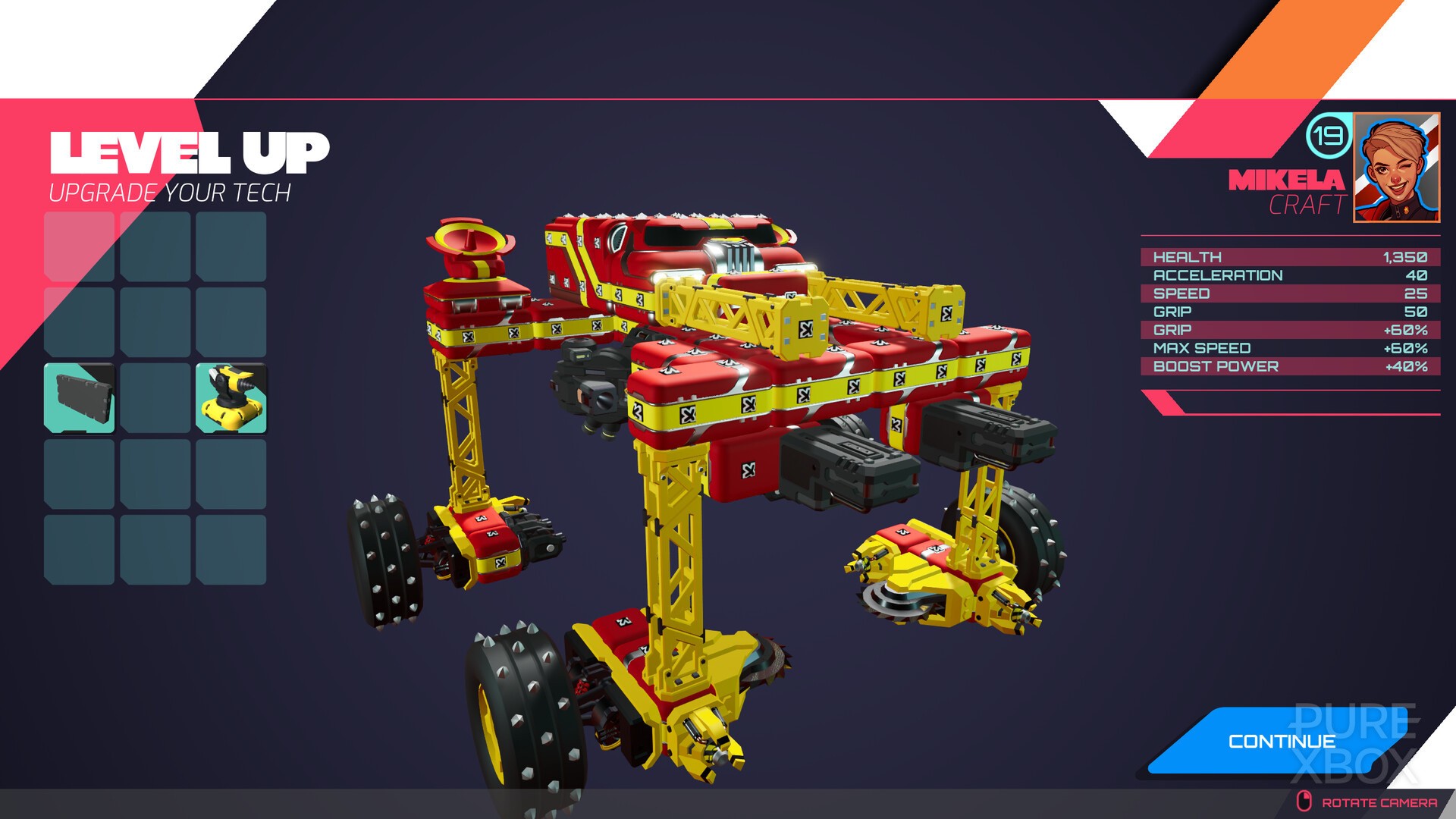 Build your Tech out of block components including wheels, boosters, chainsaws and orbital lasers, determining how it moves and fights. As you progress, unlock new blocks to assemble increasingly powerful and strategic builds.