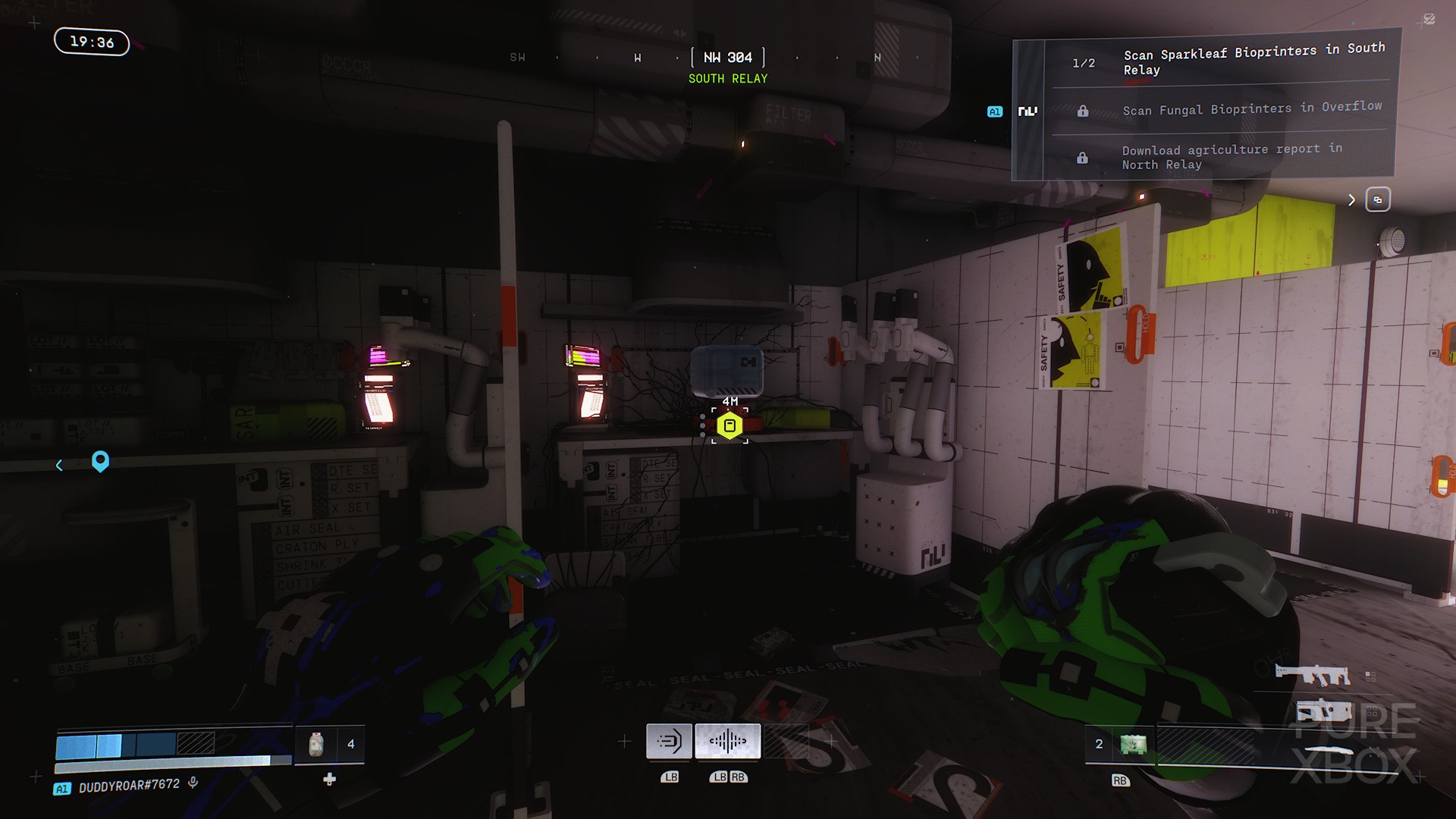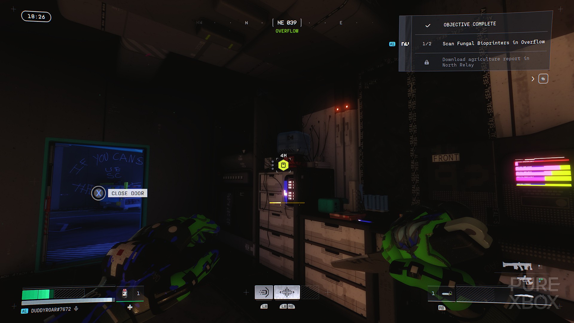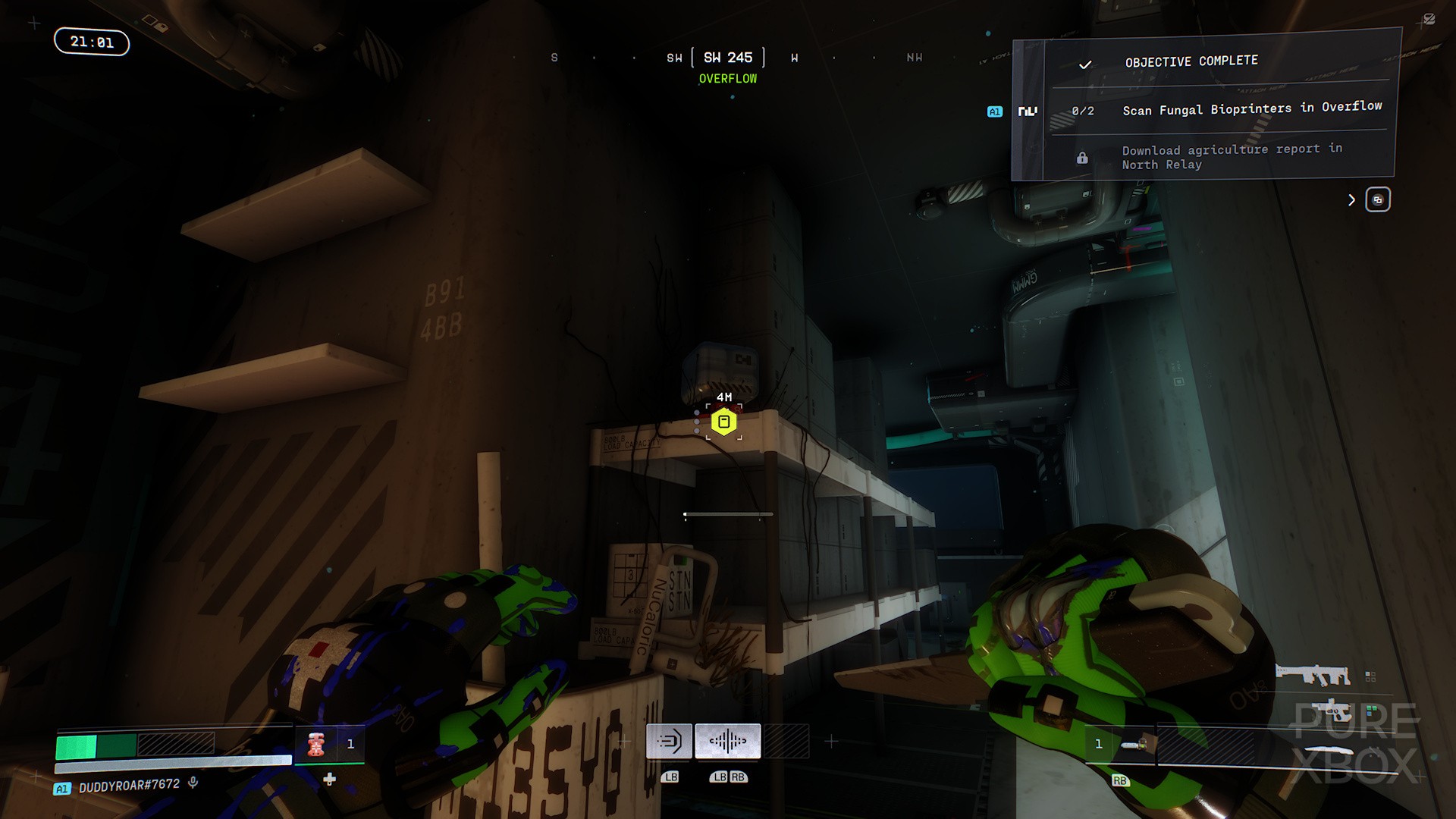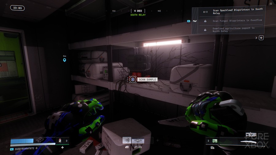 Once through the door, proceed forward, then turn left into the storage room. Inside, you will find your first Sparkleaf bioprinter to scan.