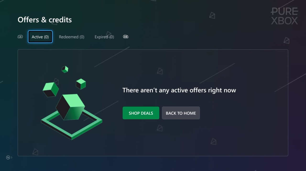 To find it, you'll need to go to the Microsoft Store app on your Xbox console, hover over your profile in the top-left corner, and then a link to "Offers & Credits" should appear. As things stand though, the page itself is totally empty:
