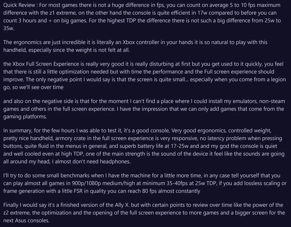 We'll leave you with a final example from someone else who also seems to have the ROG Xbox Ally X early...