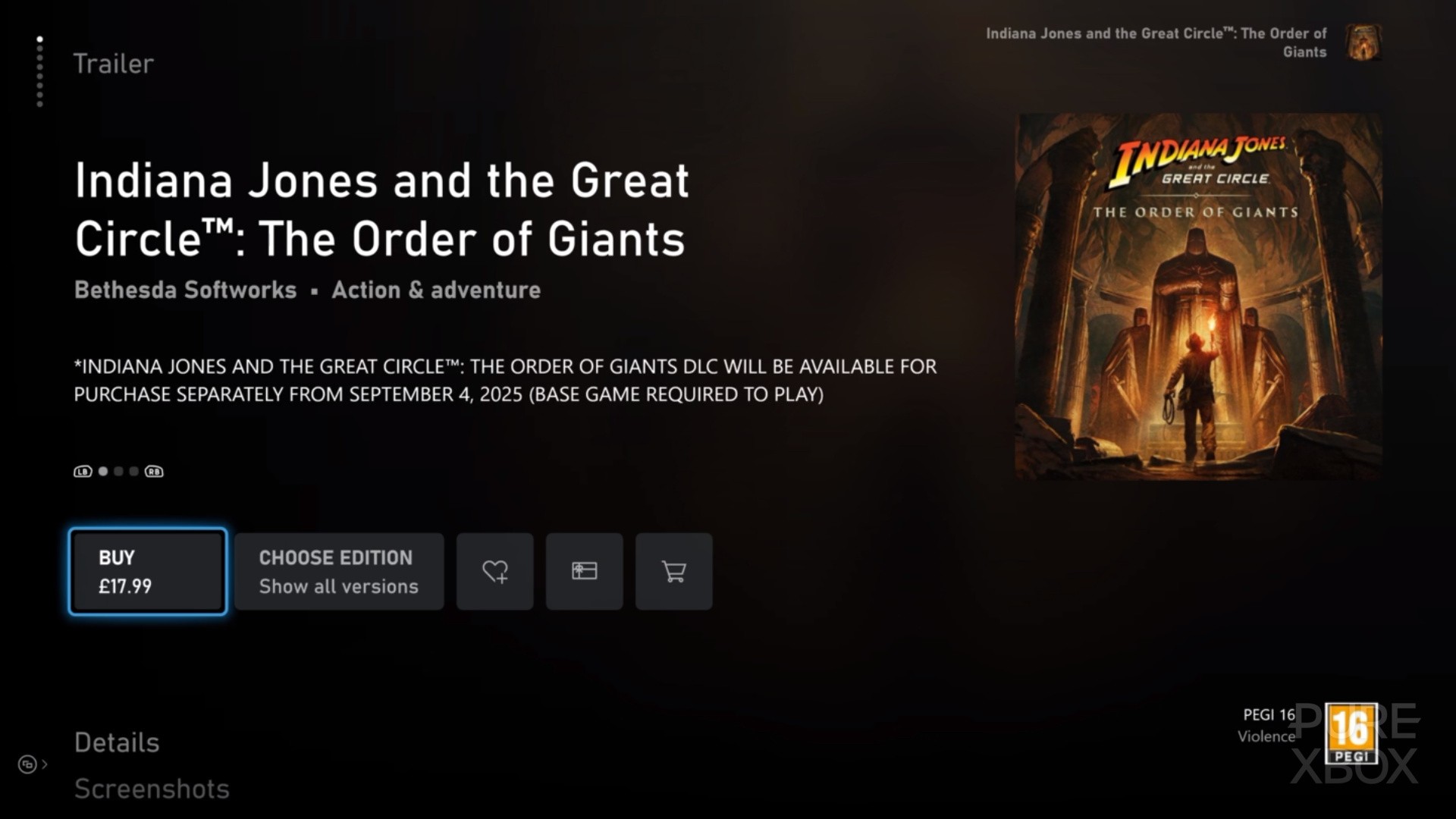 Basically, the majority of individual DLC packs for Game Pass games are no longer 10% off for subscribers (except for EA Play games where the 10% reduction still applies). We are seeing certain bundles with 10% off still — such as the Premium Upgrades for South of Midnight and Indiana Jones — but most DLC for Game Pass titles is now showing up at full price, such as the individual Order of Giants expansion for Indy. It's worth noting that the full game discount of 20% for XGP Ultimate titles is still up and running in most instances.