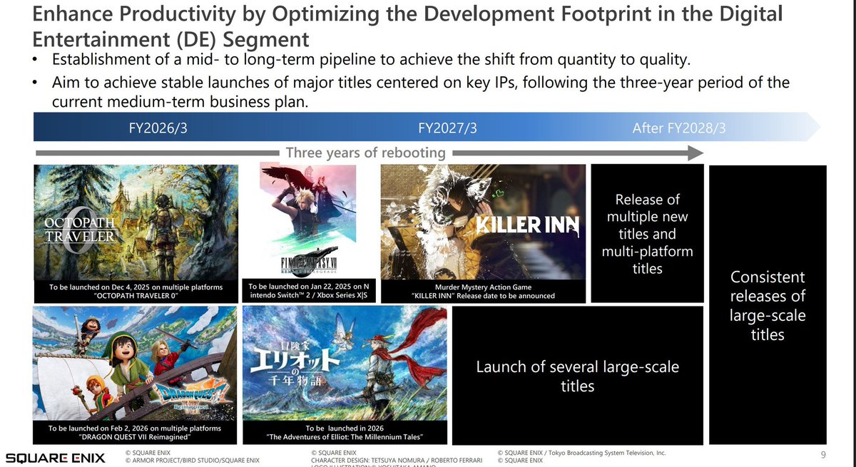 After those titles have launched, they don't want to talk about specific games right now, but apparently we're going to see "several large-scale titles" based around "key IPs" that will then become consistent from FY2028/3 onwards. It's also mentioned how the company is trying to shift from "quantity to quality".