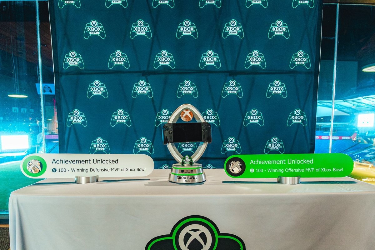 Ahead of kickoff, we're now getting a look at what the actual Xbox Bowl trophy looks like, and it's... quite something. A big Xbox logo sits at the top, while an actual ROG Xbox Ally handheld perches in the middle, at least until its hoisted.