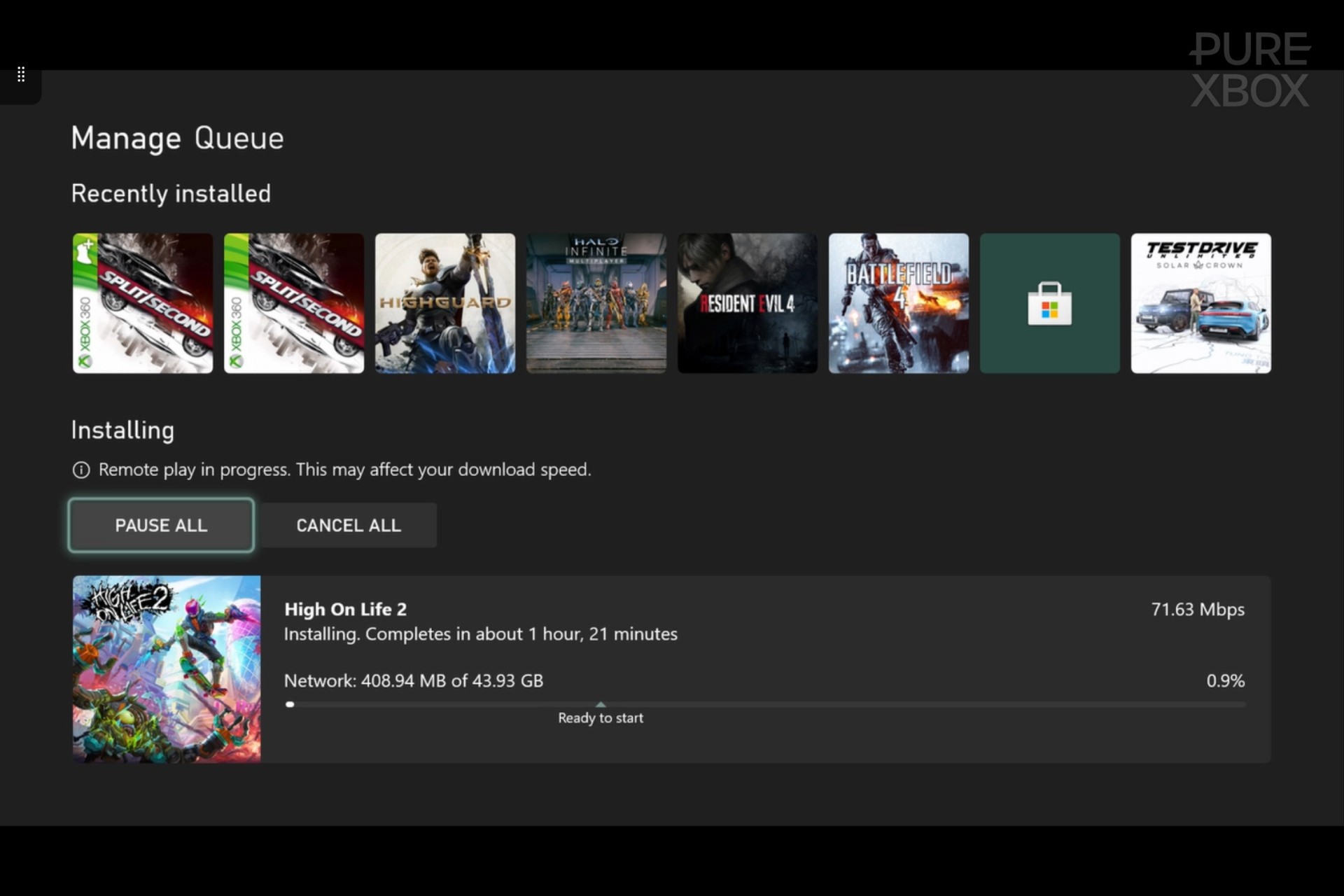 The upcoming Game Pass FPS weighs in at just about 60GB on Xbox Series X and 44GB on Xbox Series S, which is pretty good going for a modern AAA title, we reckon. You can initiate the download now via your console or through the Xbox mobile app. Here's our install on Series S:
