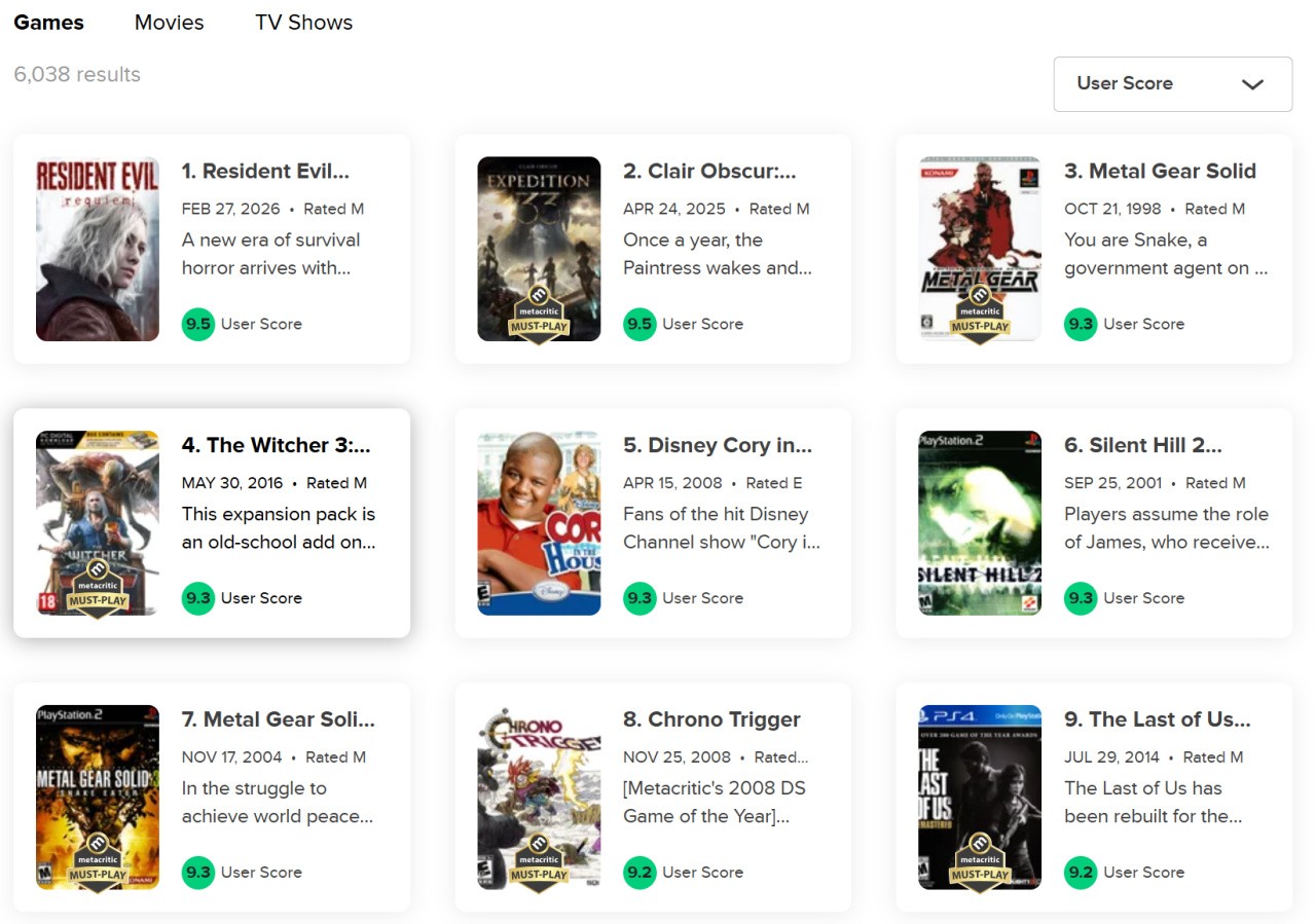 Yep, both 2025's Clair Obscur and last month's Resident Evil Requiem have a 9.5 User Score on Metacritic right now; the best user ratings ever accumulated on the platform. As we've been writing this up, the site has switched a few times in terms of what it shows as number one - but the all-important point here is that the new Resident Evil game is matching up with a title that was absolutely adored last year.