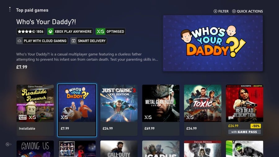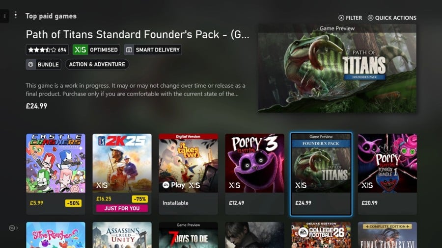 Nevertheless, there are still some interesting results we can pull out of them, and particularly at the moment where we're seeing some unlikely games finding their way into the top 100 paid games on the Xbox Store as things stand.