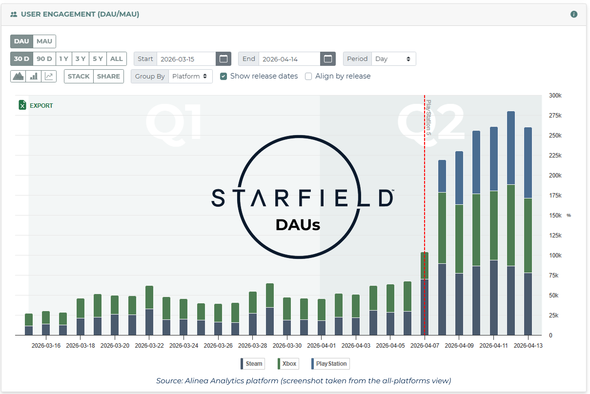 Having said that, the hype around the port and its accompanying DLC pack & update does seem to have had an affect on the existing Xbox and PC versions of Starfield. The outlet shows a huge player spike for the game on those platforms from April 7th, and it's also sold another 55,000 copies on Steam in that time too.