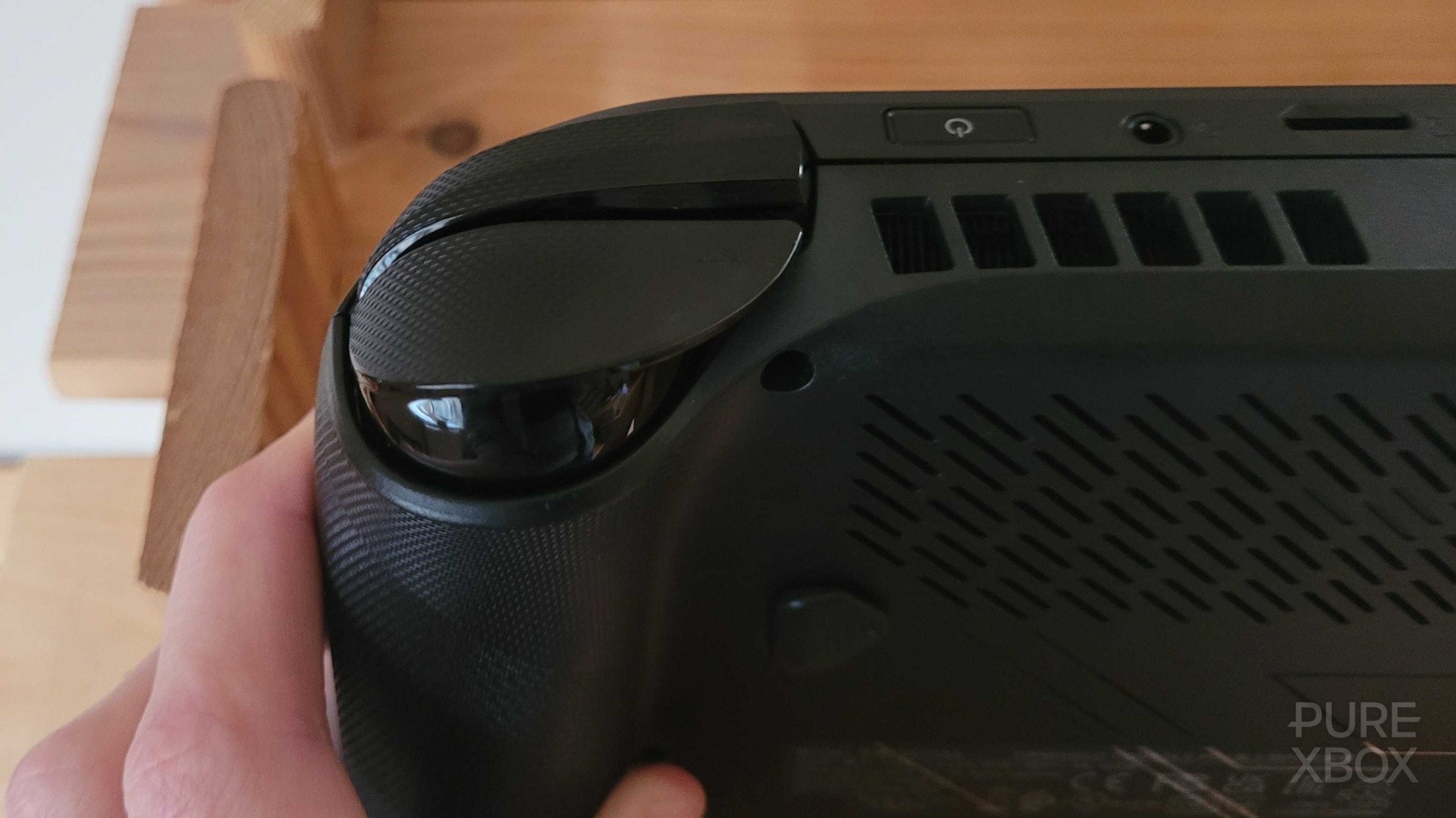 Because of this, I feel like the Ally X is something I can play for hours at a time without feeling uncomfortable, and that includes sitting at a desk, lying down in bed, sitting on the toilet - whatever the situation calls for. I'll admit that I often rest it on my leg to help reduce the weight even further, but it's not something I have to do by any means. If you took those grips away (and apparently the original Ally X suffers with this), I think it'd be a pretty rough experience after an hour-or-two. Another benefit with these handles is that I can hold the system in one hand with ease - something I wouldn't want to do too often because of how heavy it is, but it's great for transporting it around the house / office and maybe grabbing a quick drink in the middle of a game.